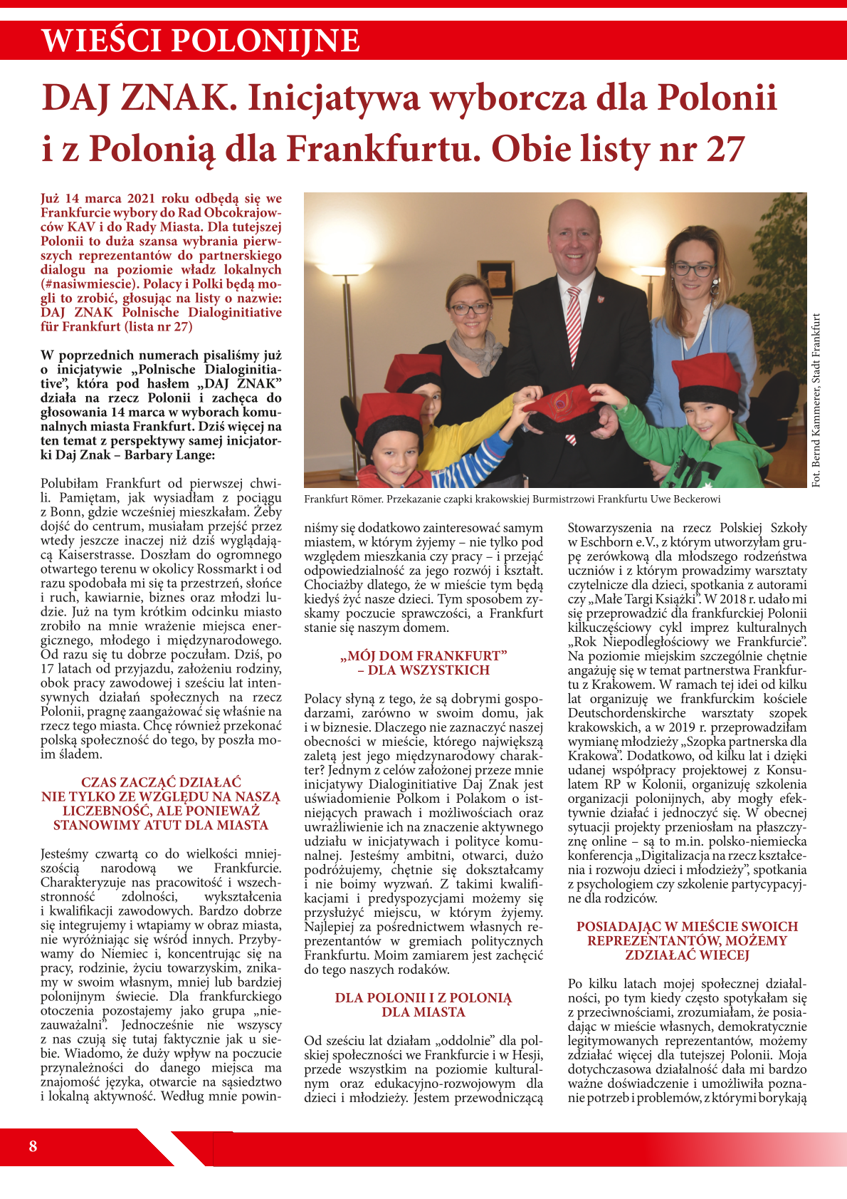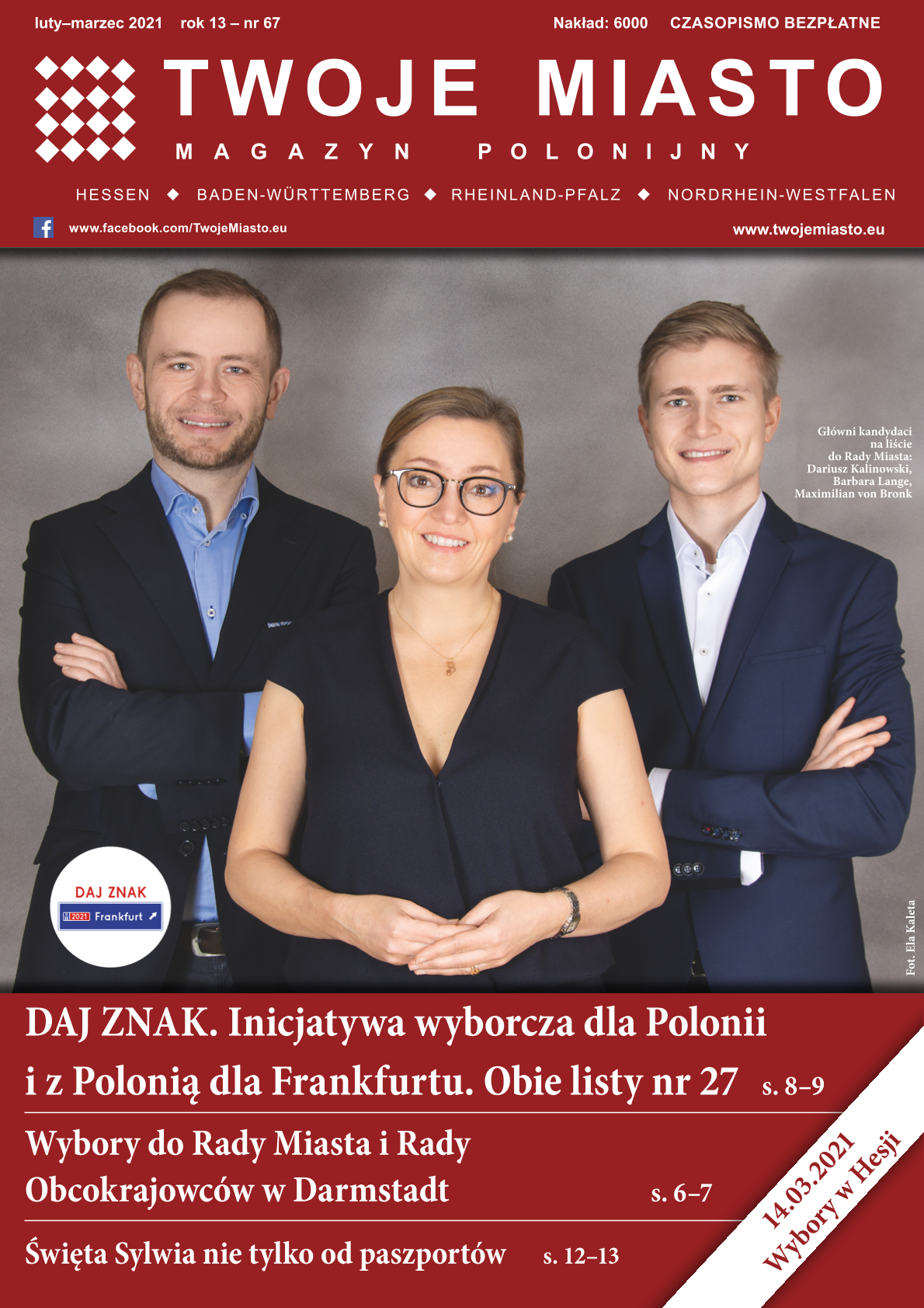 „Twoje Miasto” Magazyn Polonijny, luty – marzec 2021 r., „DAJ ZNAK. Inicjatywa wyborcza dla Polonii i z Polonią dla Frankfurtu. Obie listy nr 27”